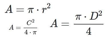 Geometria - Áreas - Calculadora de Diâmetro, Circunferência e Raio a partir da Área do Círculo