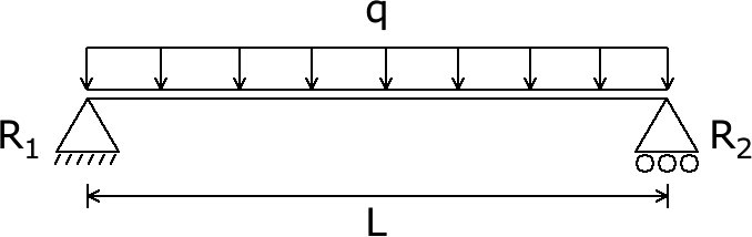 Calculadora de Viga Biapoiada Apoios Fixo e Móvel Carga Uniformemente Distribuída