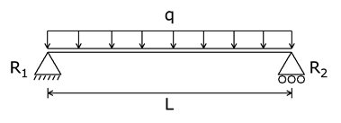 Concreto Armado - Vigas - Calculadora de Viga Biapoiada Apoios Fixo e Móvel Carga Uniformemente Distribuída