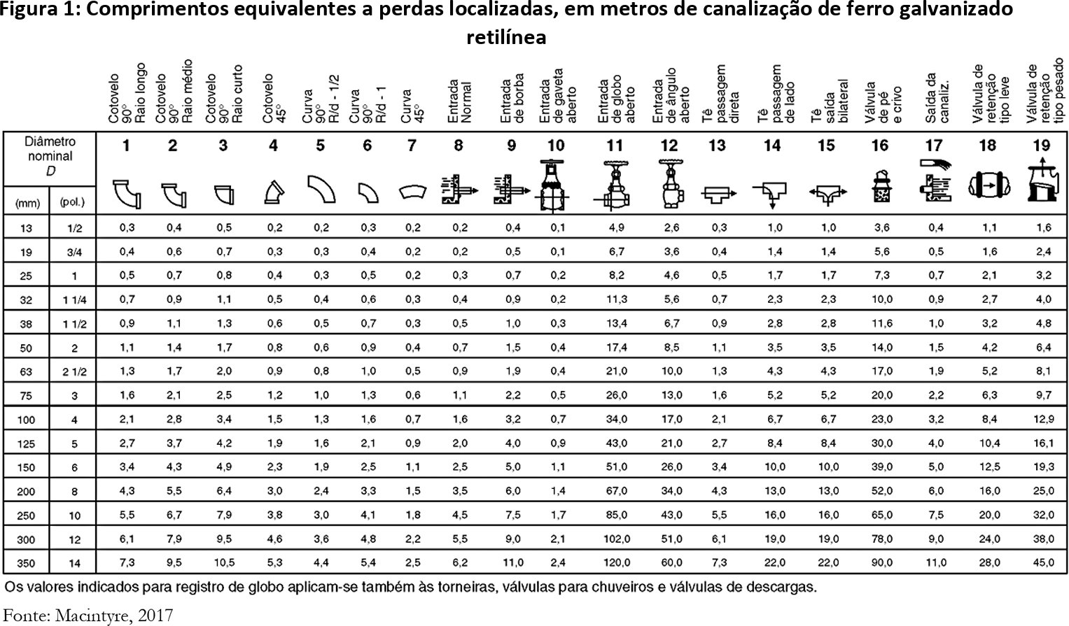 Tabela de Perdas de Cargas Localizadas - Equivalência em metros de tubulação de ferro galvanizado