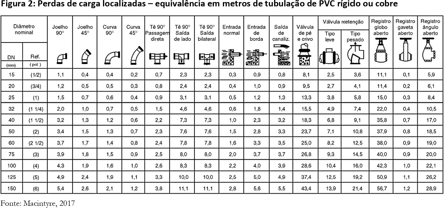 Tabela de Perdas de Cargas Localizadas - Equivalência em metros de tubulação de PVC rígido ou cobre